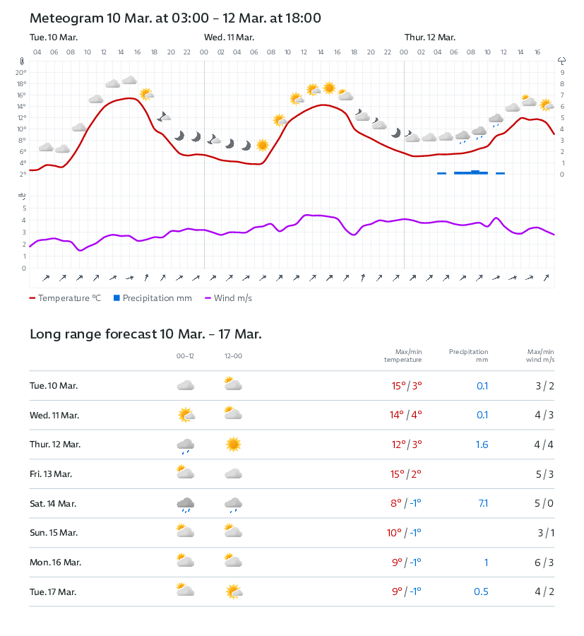 Zpočátku zataženo až oblačno, na severovýchodě ojediněle s deštěm. Postupně od západu většinou polojasno. Ojediněle mlhy. Nejnižší noční teploty 9 až 6 °C. Nejvyšší denní teploty 11 až 14 °C. Slabý jihozápadní vítr 1 až 4 m/s. | |