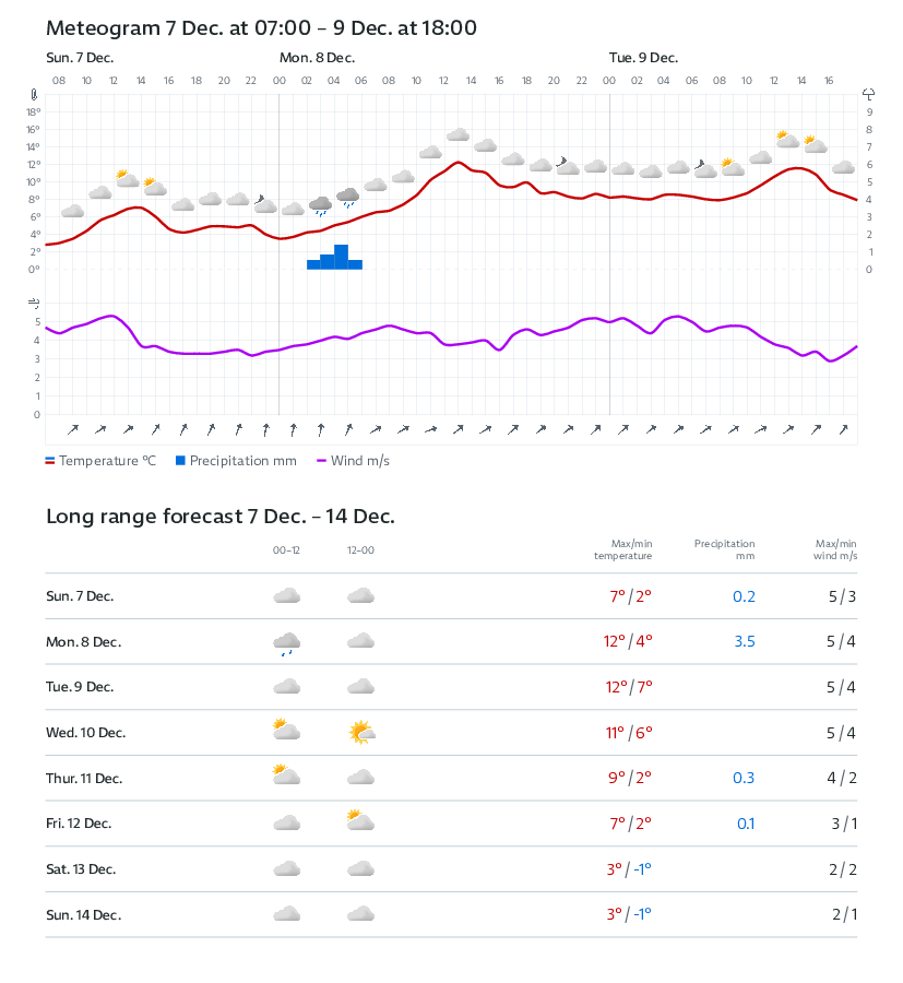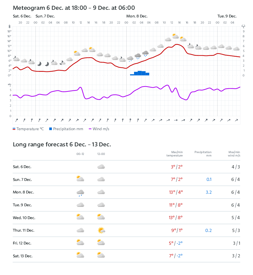 | ▼ 2 °C | | 💨 14 m/s | | 💧 5.1 mm | | ❄ 0.9 cm | |
