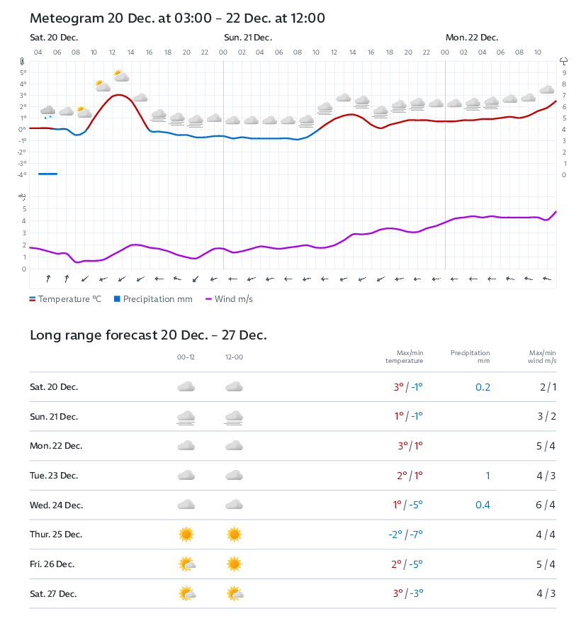 | ▼ -3 °C | | 💨 11 m/s | | 💧 0.7 mm | | ❄ 1 cm | |